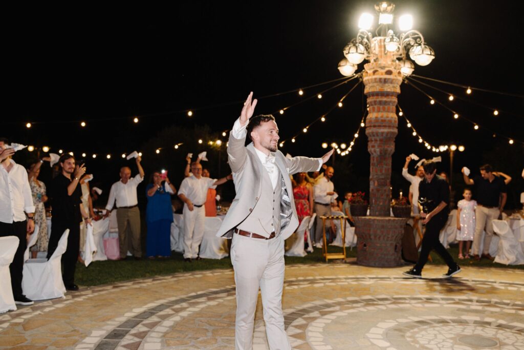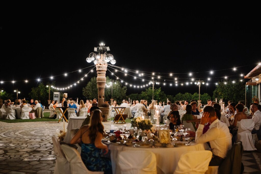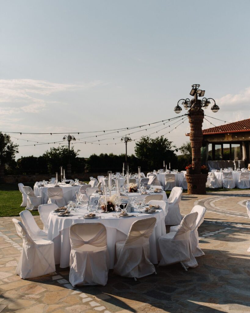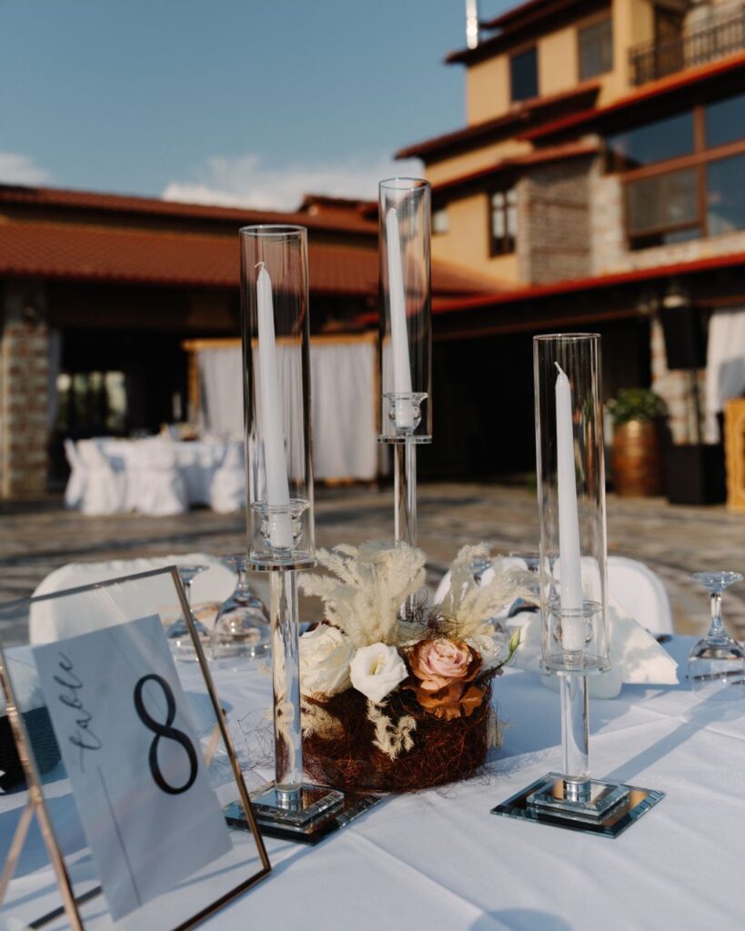 Η δεξίωση ήταν μία γιορτή απόλυτης κομψότητας. Κρυστάλλινα κηροπήγια, μοναδικές ανθοσυνθέσεις και προσεγμένα table settings συνέθεσαν ένα σκηνικό που αποπνέει φινέτσα. Κάθε καλεσμένος βρήκε στη θέση του μία ιδιαίτερη μπομπονιέρα, ενώ το πάρτι που ακολούθησε ανέβασε τη διάθεση στα ύψη, με τον DJ να κρατά το ρυθμό και τη διασκέδαση να φτάνει στο αποκορύφωμά της.