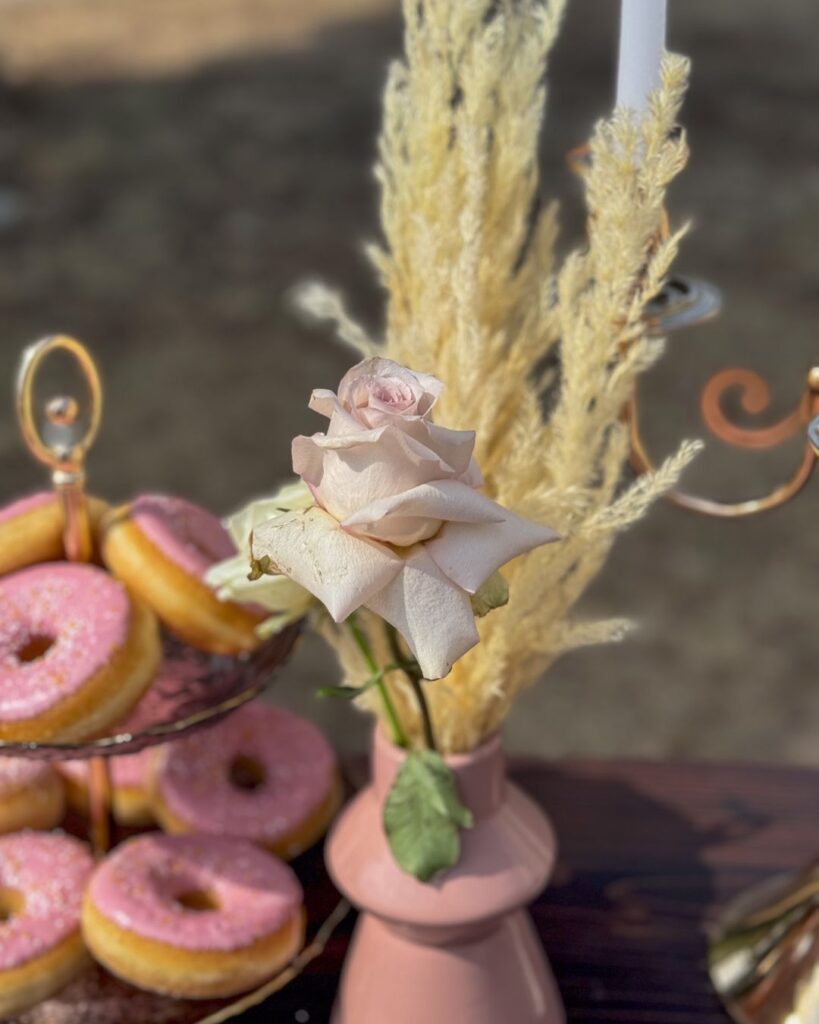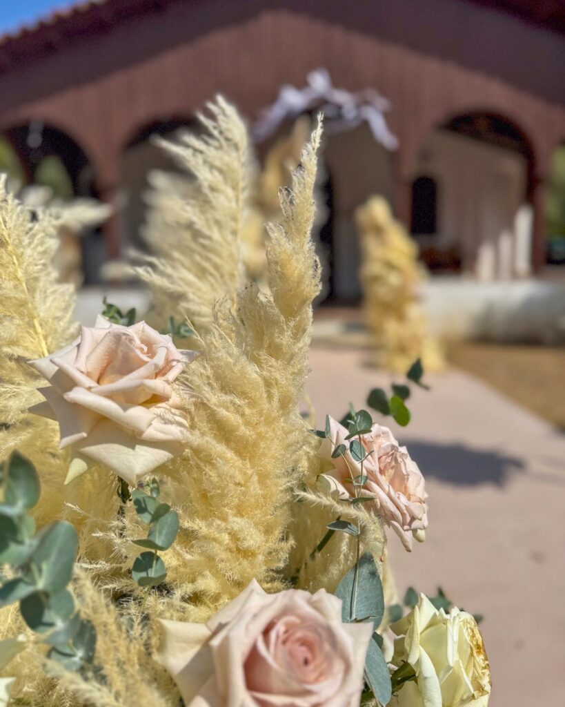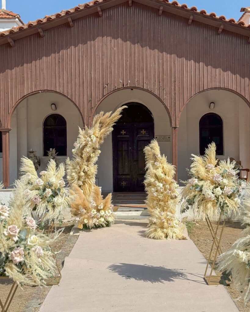 Ένας ξεχωριστός διάδρομος γεμάτος Pampas Cordials και τριαντάφυλλα και μία εντυπωσιακή διπλή αψίδα στήθηκαν ειδικά για τον Γιώργο & την Σταυρούλα, για την ιδιαίτερη μέρα τους! Το candy bar με τα επιβλητικά μοναστηριακά τραπέζια και τις γλυκές δημιουργίες, αφιερωμένες στη μικρή Μαρήλια, πρόσφερε στους καλεσμένους στιγμές απόλαυσης!