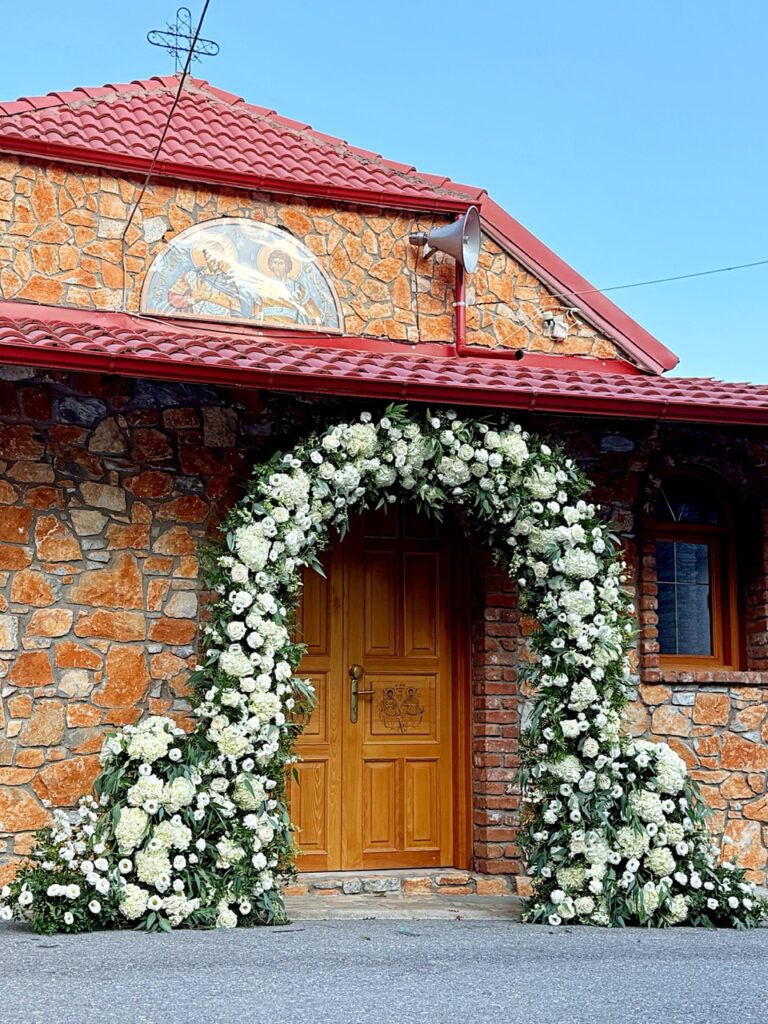 Στο ceremony, δέσποζε μια εντυπωσιακή και επιβλητική αψίδα, γεμάτη λευκά άνθη και πλούσιες ανθοσυνθέσεις, που αποτέλεσε το απόλυτο φόντο για τις πιο συγκινητικές στιγμές του ζευγαριού. Το candy bar ξεχώρισε για τα μοναδικά γλυκά του και την elegant διακόσμησή του, με δύο κρυστάλλινους πολυελαίους να δεσπόζουν από πάνω και να χαρίζουν μια αίσθηση αληθινής πολυτέλειας.
