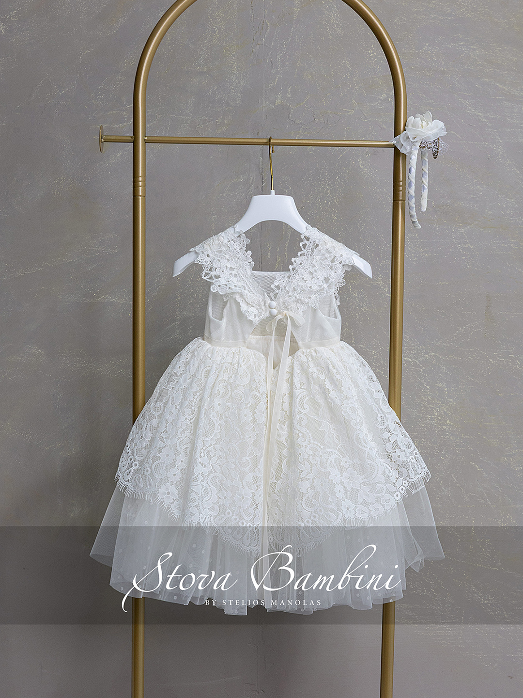 Εκλεπτυσμένο και διαχρονικά κομψό φόρεμα σε φίνα ivory απόχρωση, που ξεχωρίζει για την ιδιαίτερη υφή και τη λεπτομέρειά του. Το μπούστο από περίτεχνη δαντέλα Ιταλίας με διακριτικές διαφάνειες αναδεικνύει με μοναδικό τρόπο το σχέδιο, ενώ οι εντυπωσιακές δαντελένιες τιράντες προσθέτουν μία αίσθηση υψηλής αισθητικής. Η φούστα από πλούσια δαντέλα του επώνυμου Γαλλικού Οίκου Sophie Hallette σε συνδυασμό με ανάλαφρο τούλι Ισπανίας, δημιουργεί ένα αέρινο αποτέλεσμα με όμορφη κίνηση και βάθος. Η ζώνη στη μέση ολοκληρώνεται με ένα εντυπωσιακό χειροποίητο λουλούδι, προσθέτοντας μία φίνα και διακριτική πινελιά πολυτέλειας στο σύνολο. Η πλάτη με τα κουμπάκια και το κομψό δέσιμο ενισχύει τον εκλεπτυσμένο χαρακτήρα του φορέματος, χαρίζοντας μία ολοκληρωμένη εικόνα υψηλής ραπτικής. Όλα τα φορέματα διαθέτουν εσωτερική επένδυση 100% Cotton για απόλυτη άνεση.